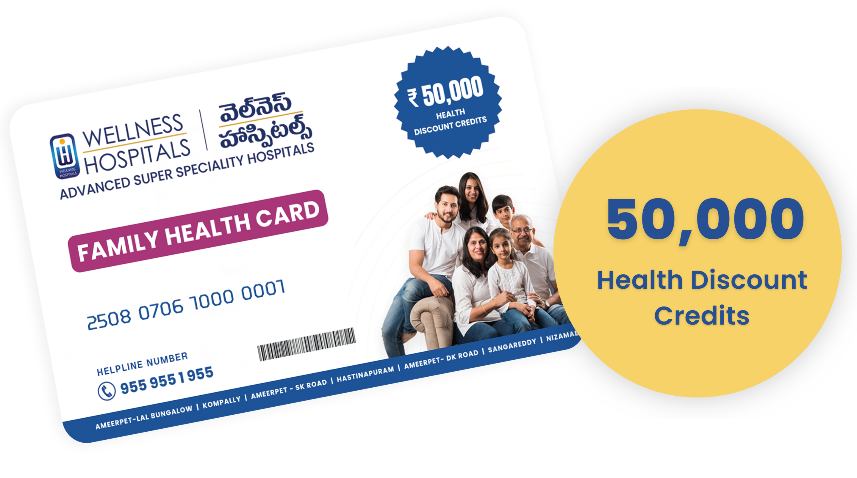 The Wellness Family Health Card gives your family exclusive savings on consultations, diagnostics, and pharmacy services across all Wellness Hospitals.Enjoy priority appointments with our expert doctors, ensuring faster access to quality care without long waiting times.Receive a free annual master health checkup, helping your family stay ahead with preventive healthcare.Avail member-only discounts on lab tests, radiology, and selected OPD procedures throughout the year.